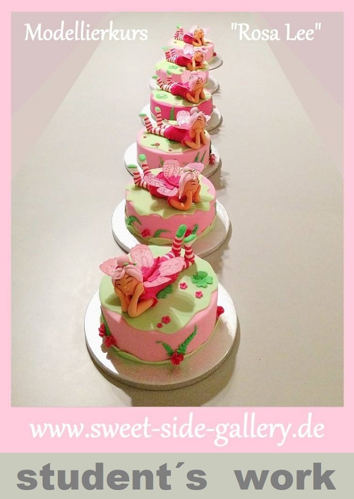 Eine Kreation aus farbigem Fondant und leichtem Wafer Papier. Die Elfe wird nach kindlichen Körper-Proportionen modelliert.